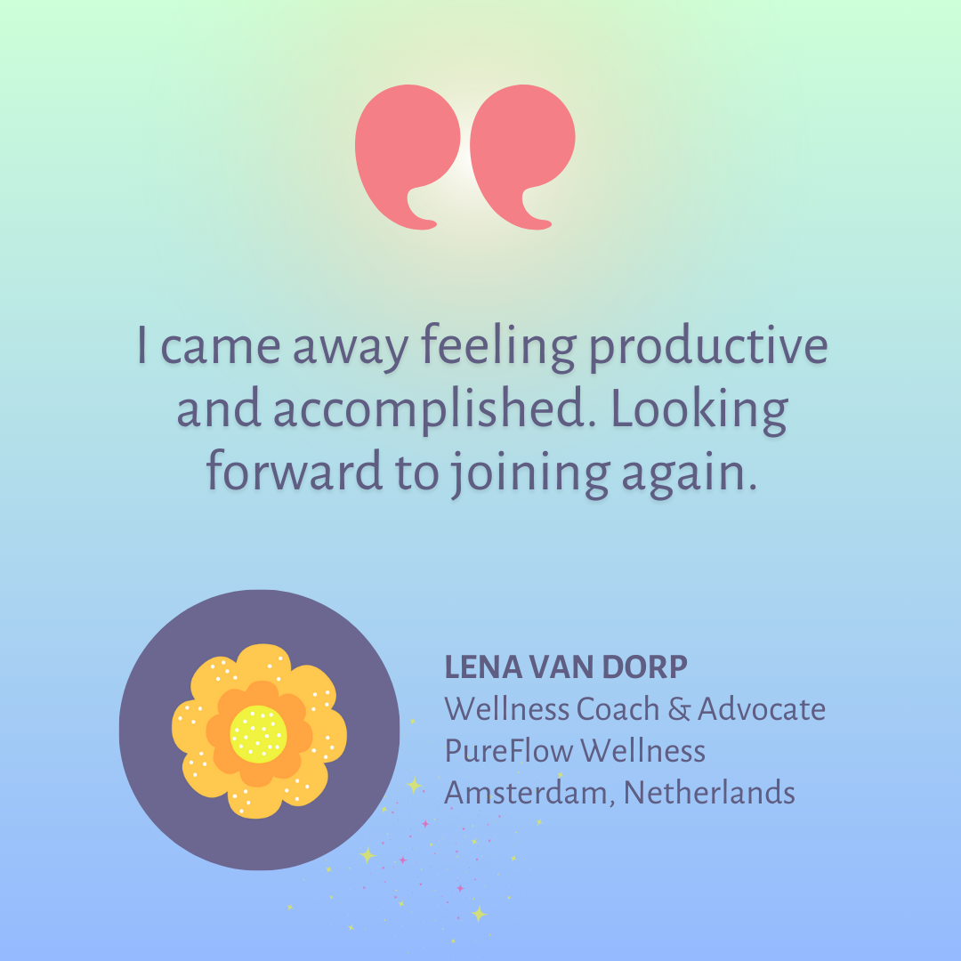 Together, we'll evoke this lovely essence in our weekly Zoom co-working sessions.